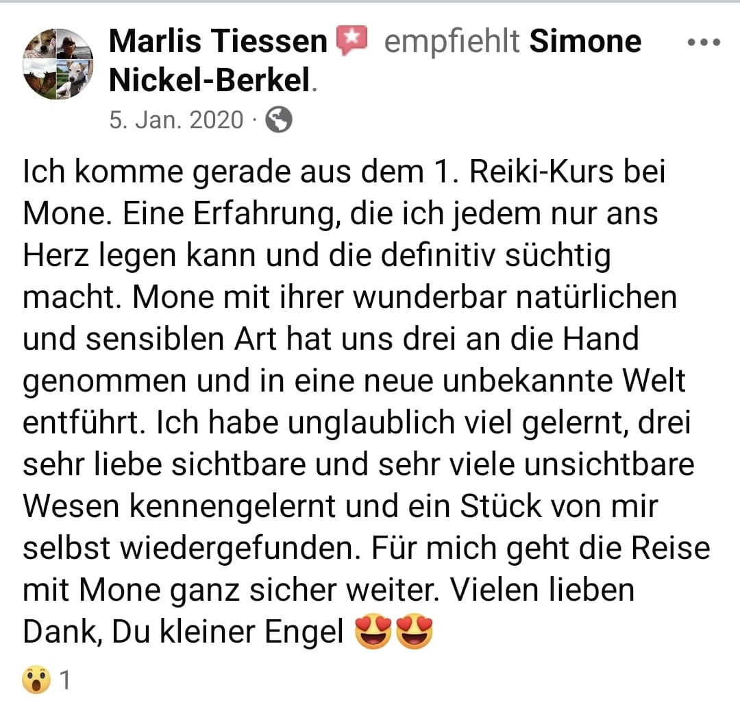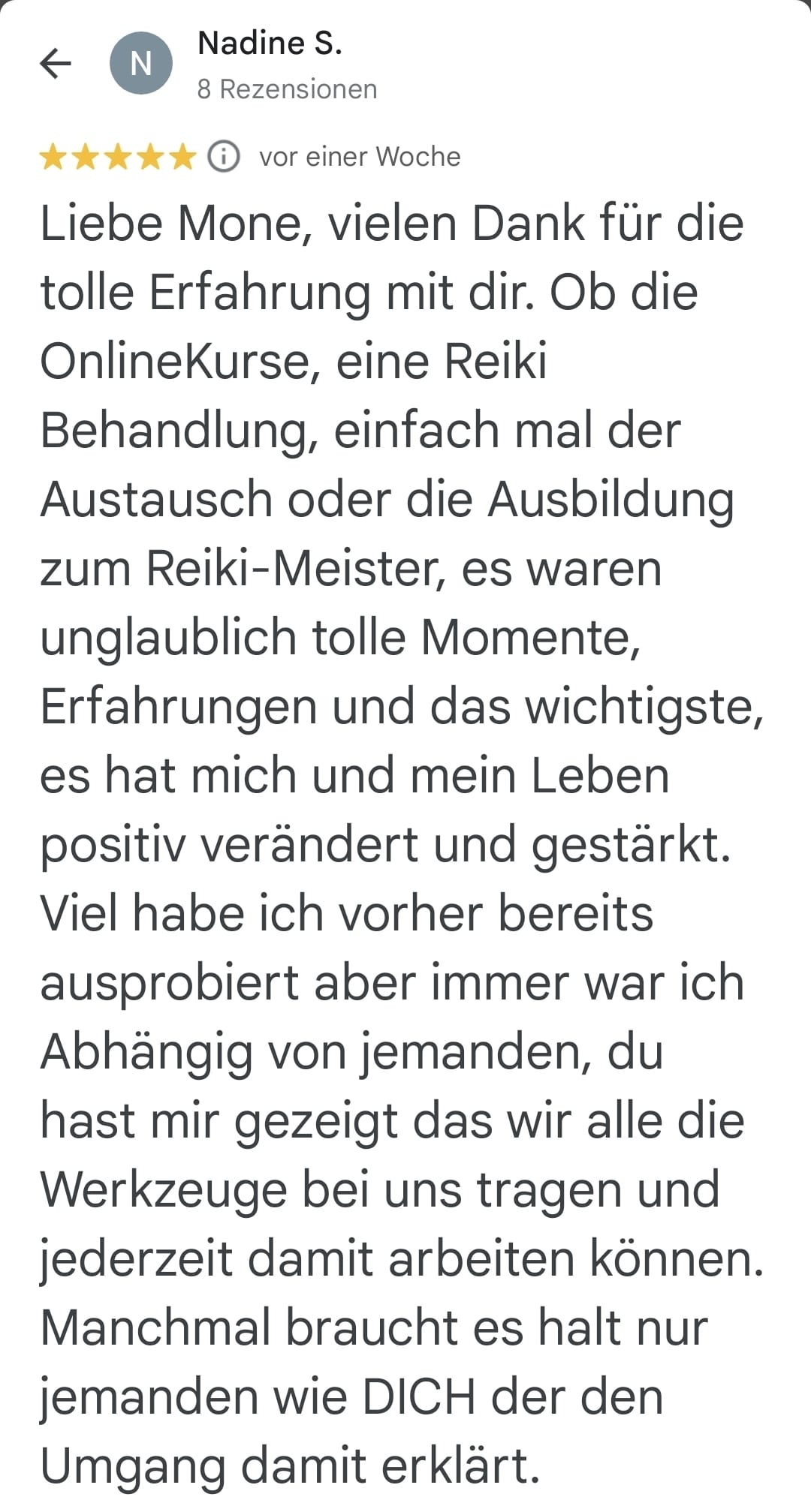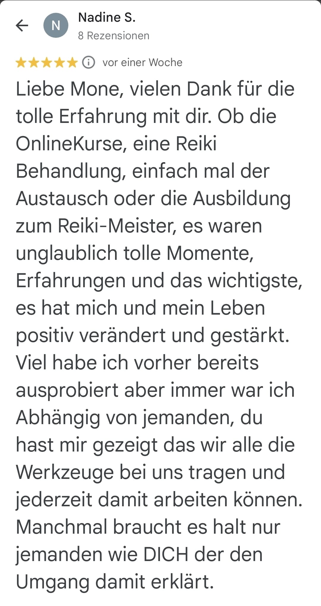 Neben meinen Behandlungen biete ich die Möglichkeit, Reiki selbst zu erlernen. In meiner Reiki Ausbildung in Hamburg begleite ich dich von den Grundlagen bis hin zum Meistergrad – und zeige, wie Reiki im Alltag ein verlässlicher Begleiter werden kann.