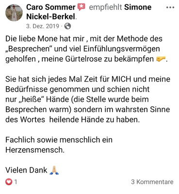 Einfach unglaublich!!!Ich fühle mich seit Jahren endlich wieder Befreit,fantastisch und habe endlich durchgeschlafen!!!Vielen lieben dank Moni...ich kann es jedem nur empfehlen der Hilfe Brauch!Danke dir